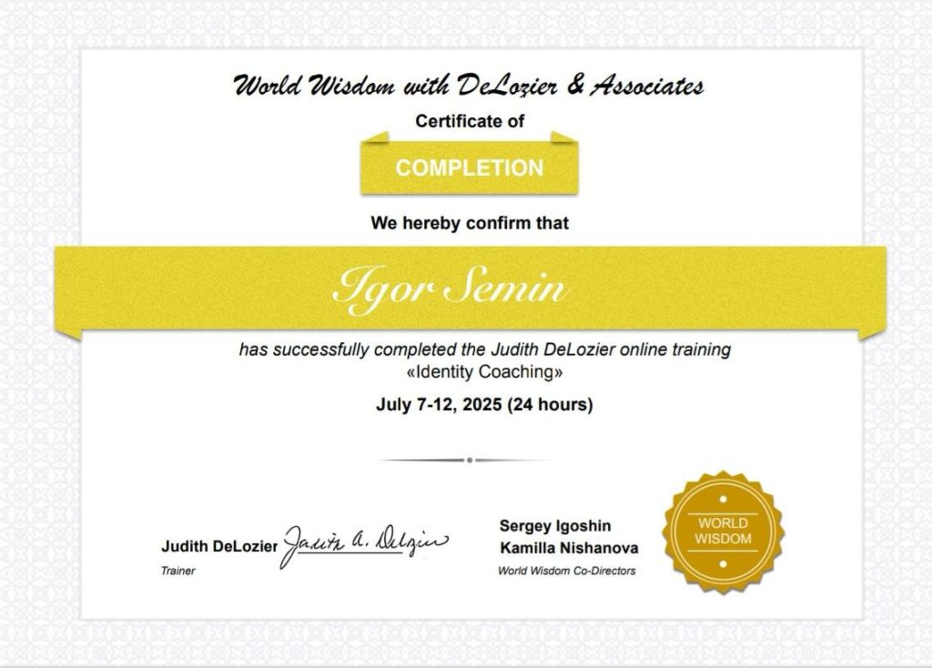 Психолог, коуч с международной сертификацией в генеративном коучинге (Ассоциация IAGC), специалист европейской методики «социальная панорама». Обучался у ведущих западных экспертов, таких, как Роберт Дилтс, Стивен Гиллиген, Джудит ДеЛозье, Лукас Деркс, и др., а также у многих известных отечественных специалистов. Занимаюсь вопросами системного подхода к гармоничному развитию с 2005 года.